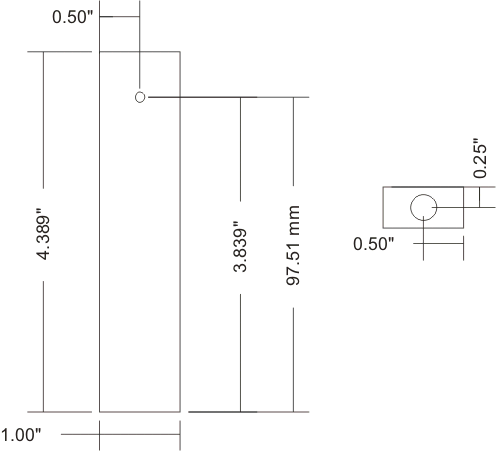 - Using Vernier Calipers, mark off the center for the through hole. It should be 97.5 mm from the base and in the center of the rod (12.7 mm from the edge). Make sure the scratch marks are visible and make a tap mark with a center tap.